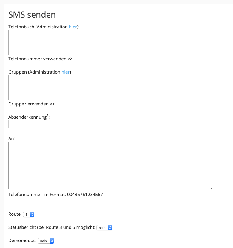 Das machen wir an dieser Stelle nicht, denn der Absender wäre ja inkorrekt. Wir verwenden an dieser Stelle einen SMS Account beim SMS-Gateway “firmensms.at”. Dieses erlaubt uns den Absender weitgehend frei zu wählen:
